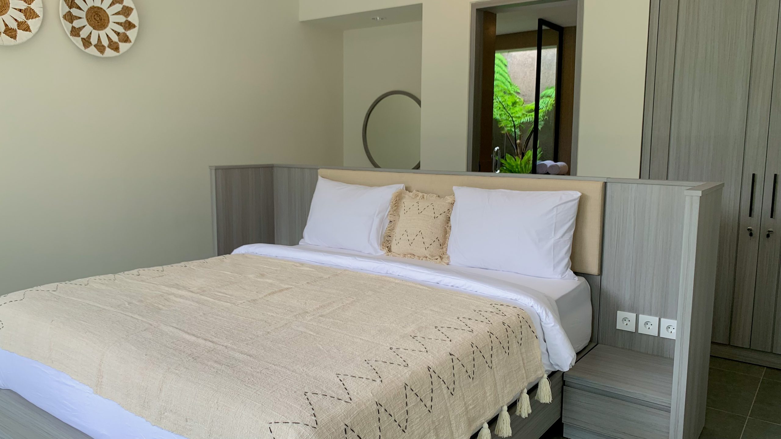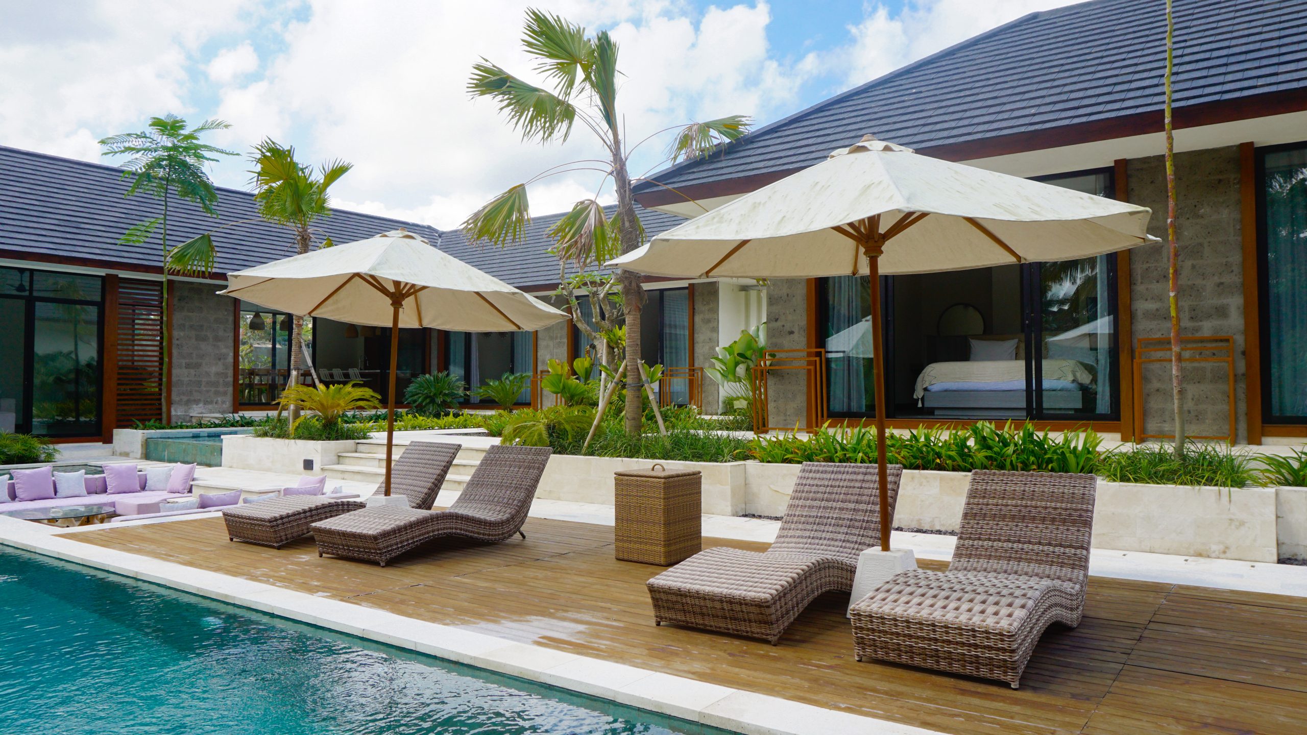 The Kayu 1 Villa has a luxury model equipped with 4 bedrooms. You can enjoy the beauty of the sunrise and sunset at the Villa. The view of lush trees is located right in front of the swimming pool. Highly recommended for those of you who want to enjoy a vacation with family because this villa has a very large size.